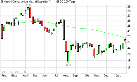 Mit dem Anstieg auf 22,60 EUR hat die Hitachi Construction Machinery-Aktie am 23.01.2025 die 200-Tage-Linie nach oben gekreuzt.