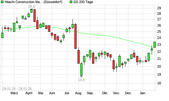 Mit dem Anstieg auf 22,80 EUR hat die Hitachi Construction Machinery-Aktie am 27.01.2025 die 200-Tage-Linie nach oben gekreuzt.