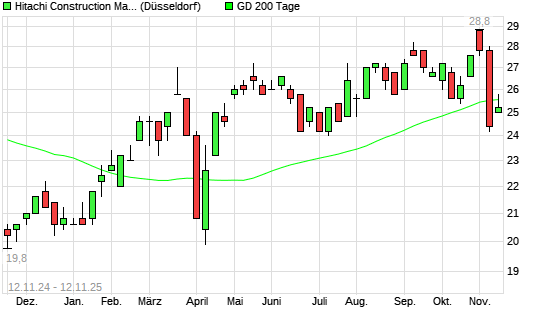 Mit dem Anstieg auf 25,80 EUR hat die Hitachi Construction Machinery-Aktie am 11.11.2025 die 200-Tage-Linie nach oben gekreuzt.