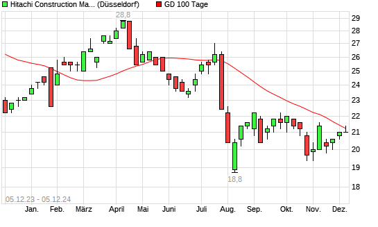 Mit dem Rücksetzer auf 21,20 EUR hat die Hitachi Construction Machinery-Aktie am 04.12.2024 die 100-Tage-Linie nach unten gekreuzt.