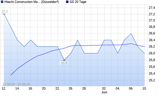 Mit dem Rücksetzer auf 26,20 EUR hat die Hitachi Construction Machinery-Aktie am 09.06.2025 die 20-Tage-Linie nach unten gekreuzt.