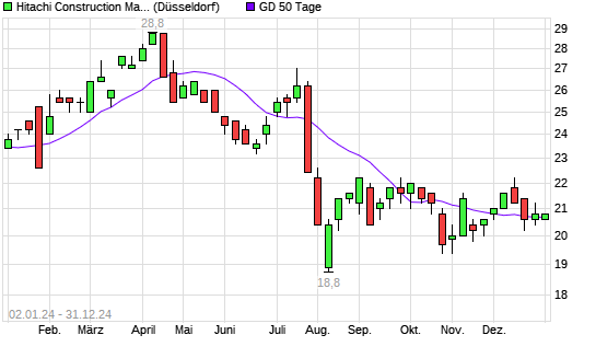 Mit dem Rücksetzer auf 20,60 EUR hat die Hitachi Construction Machinery-Aktie am 30.12.2024 die 50-Tage-Linie nach unten gekreuzt.