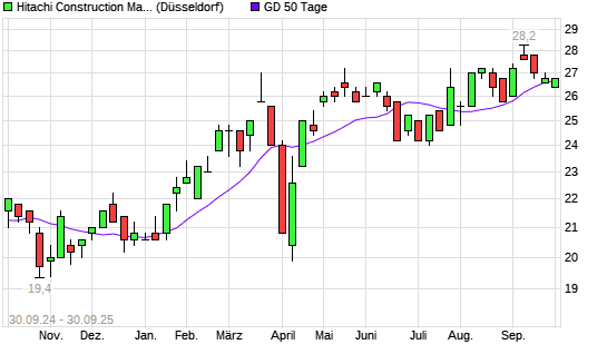 Mit dem Rücksetzer auf 26,40 EUR hat die Hitachi Construction Machinery-Aktie am 29.09.2025 die 50-Tage-Linie nach unten gekreuzt.