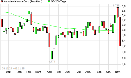 Mit dem Rücksetzer auf 5,20 EUR hat die Hitachi Zosen-Aktie am 07.11.2025 die 200-Tage-Linie nach unten gekreuzt.
