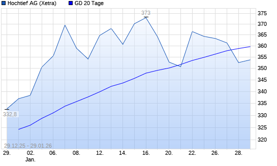 Mit dem Rücksetzer auf 348,40 EUR hat die Hochtief-Aktie am 28.01.2026 die 20-Tage-Linie nach unten gekreuzt.