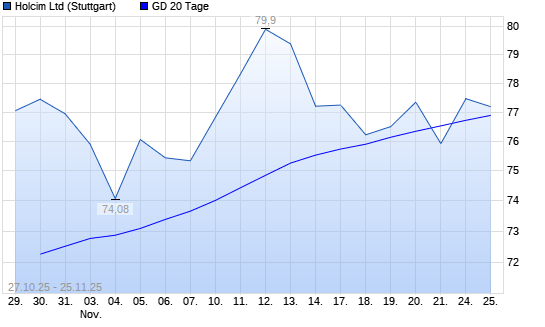 Mit dem Anstieg auf 77,52 EUR hat die Holcim-Aktie am 24.11.2025 die 20-Tage-Linie nach oben gekreuzt.