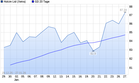 Mit dem Anstieg auf 86,50 EUR hat die Holcim-Aktie am 26.01.2026 die 20-Tage-Linie nach oben gekreuzt.