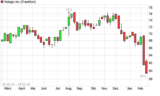 Mit dem Rücksetzer auf 59,50 EUR hat die Hologic-Aktie (ISIN US4364401012) am 14.02.2025 ein neues 3-Jahres-Tief erreicht und damit den Kurs vom 13.02.2025 eingestellt.