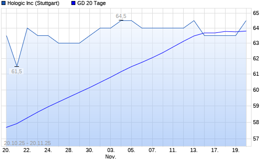 Mit dem Anstieg auf 64,00 EUR hat die Hologic-Aktie am 19.11.2025 die 20-Tage-Linie nach oben gekreuzt.