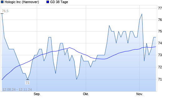 Mit dem Anstieg auf 74,00 EUR hat die Hologic-Aktie am 11.11.2024 die 38-Tage-Linie nach oben gekreuzt.