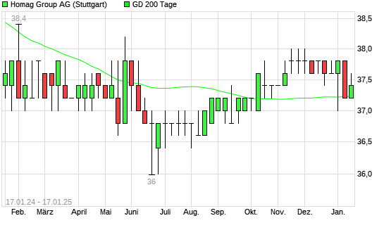 Mit dem Anstieg auf 37,80 EUR hat die Homag-Aktie am 16.01.2025 die 200-Tage-Linie nach oben gekreuzt.
