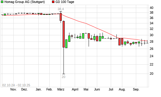 Mit dem Rücksetzer auf 27,20 EUR hat die Homag-Aktie am 01.10.2025 die 100-Tage-Linie nach unten gekreuzt.