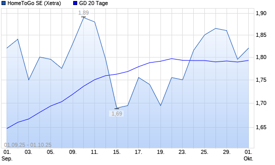 Mit dem Anstieg auf 1,80 EUR hat die HomeToGo-Aktie am 30.09.2025 die 20-Tage-Linie nach oben gekreuzt.