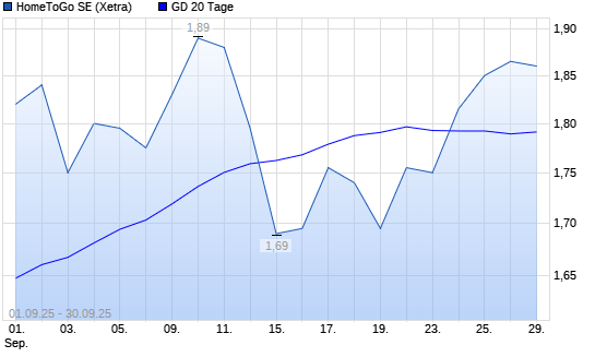 Mit dem Rücksetzer auf 1,77 EUR hat die HomeToGo-Aktie am 29.09.2025 die 20-Tage-Linie nach unten gekreuzt.