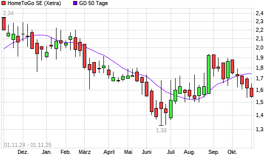Mit dem Rücksetzer auf 1,70 EUR hat die HomeToGo-Aktie am 31.10.2025 die 50-Tage-Linie nach unten gekreuzt.