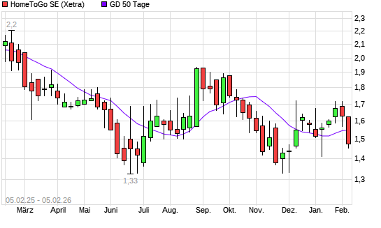Mit dem Rücksetzer auf 1,53 EUR hat die HomeToGo-Aktie am 04.02.2026 die 50-Tage-Linie nach unten gekreuzt.