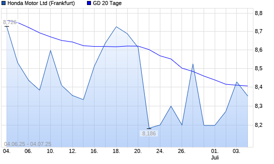 Mit dem Anstieg auf 8,43 EUR hat die Honda Motor-Aktie am 03.07.2025 die 20-Tage-Linie nach oben gekreuzt.