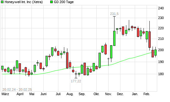 Mit dem Anstieg auf 202,25 EUR hat die Honeywell-Aktie am 19.02.2025 die 200-Tage-Linie nach oben gekreuzt.