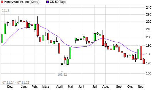 Mit dem Anstieg auf 170,02 EUR hat die Honeywell-Aktie am 06.11.2025 die 50-Tage-Linie nach oben gekreuzt.