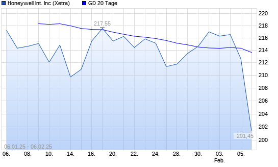 Mit dem Rücksetzer auf 212,20 EUR hat die Honeywell-Aktie am 05.02.2025 die 20-Tage-Linie nach unten gekreuzt.