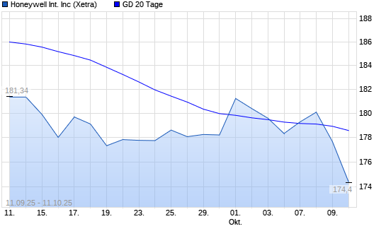 Mit dem Rücksetzer auf 174,38 EUR hat die Honeywell-Aktie am 10.10.2025 die 20-Tage-Linie nach unten gekreuzt.