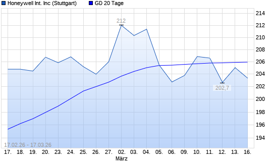 Mit dem Rücksetzer auf 201,70 EUR hat die Honeywell-Aktie am 16.03.2026 die 20-Tage-Linie nach unten gekreuzt.
