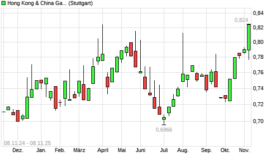 Mit dem Anstieg auf 0,83 EUR hat die Hong Kong & China Gas-Aktie (ISIN HK0003000038) am 07.11.2025 ein neues 12-Monats-Hoch erreicht und damit den Kurs vom 14.05.2025 eingestellt.