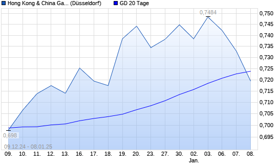 Mit dem Rücksetzer auf 0,73 EUR hat die Hong Kong & China Gas-Aktie am 07.01.2025 die 20-Tage-Linie nach unten gekreuzt.