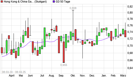 Mit dem Rücksetzer auf 0,73 EUR hat die Hong Kong & China Gas-Aktie am 07.03.2025 die 50-Tage-Linie nach unten gekreuzt.