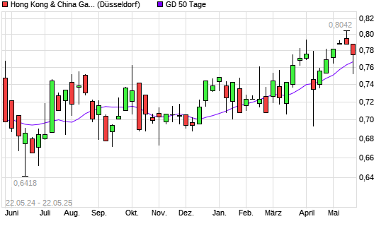 Mit dem Rücksetzer auf 0,77 EUR hat die Hong Kong & China Gas-Aktie am 21.05.2025 die 50-Tage-Linie nach unten gekreuzt.