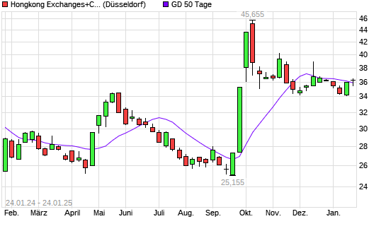 Mit dem Anstieg auf 35,98 EUR hat die Hongkong Exchanges+Clearing-Aktie am 23.01.2025 die 50-Tage-Linie nach oben gekreuzt.