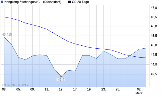 Mit dem Rücksetzer auf 44,47 EUR hat die Hongkong Exchanges+Clearing-Aktie am 02.03.2026 die 20-Tage-Linie nach unten gekreuzt.Die Hongkong Exchanges+Clearing-Aktie befindet sich ...weiterlesen