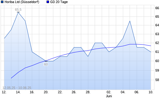 Mit dem Rücksetzer auf 62,00 EUR hat die Horiba-Aktie am 09.06.2025 die 20-Tage-Linie nach unten gekreuzt.