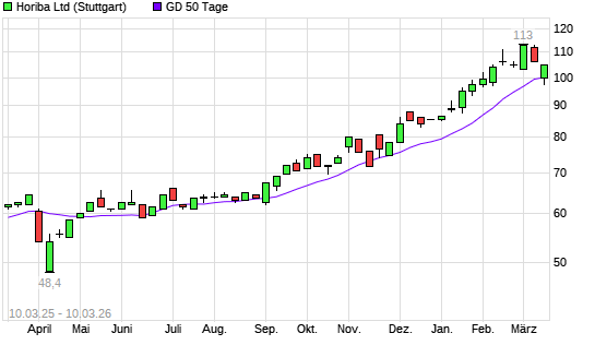 Mit dem Rücksetzer auf 98,50 EUR hat die Horiba-Aktie am 09.03.2026 die 50-Tage-Linie nach unten gekreuzt.
