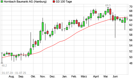 Mit dem Anstieg auf 65,50 EUR hat die Hornbach Baumarkt-Aktie am 30.06.2025 die 100-Tage-Linie nach oben gekreuzt.