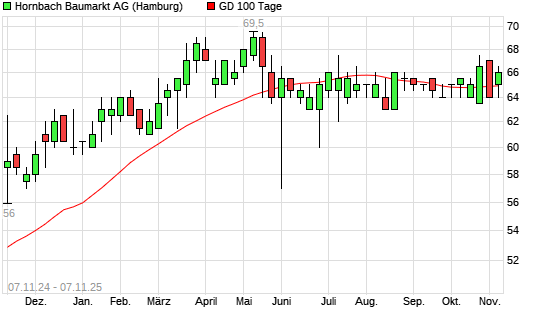 Mit dem Anstieg auf 65,00 EUR hat die Hornbach Baumarkt-Aktie am 06.11.2025 die 100-Tage-Linie nach oben gekreuzt.