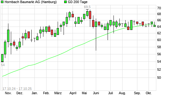 Mit dem Anstieg auf 65,50 EUR hat die Hornbach Baumarkt-Aktie am 16.10.2025 die 200-Tage-Linie nach oben gekreuzt.