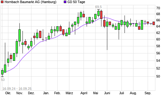 Mit dem Rücksetzer auf 64,50 EUR hat die Hornbach Baumarkt-Aktie am 15.09.2025 die 50-Tage-Linie nach unten gekreuzt.