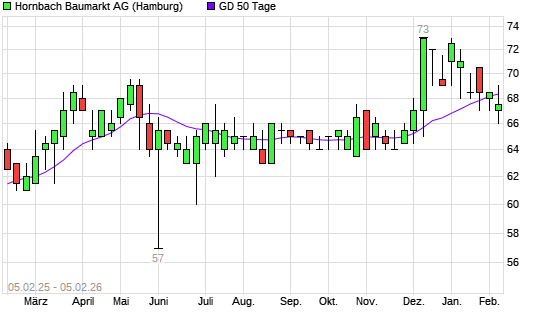 Mit dem Rücksetzer auf 67,00 EUR hat die Hornbach Baumarkt-Aktie am 04.02.2026 die 50-Tage-Linie nach unten gekreuzt.