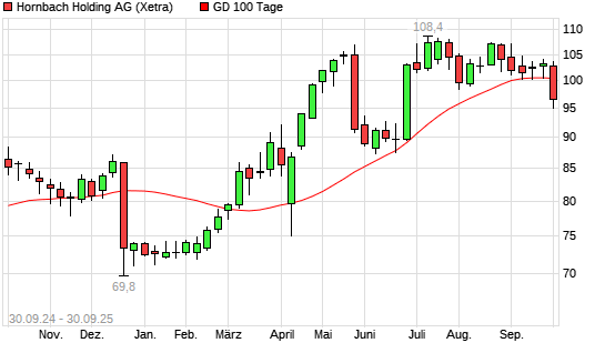 Mit dem Anstieg auf 102,80 EUR hat die Hornbach Holding-Aktie am 29.09.2025 die 100-Tage-Linie nach oben gekreuzt.