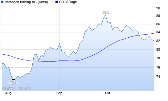 Mit dem Rücksetzer auf 83,30 EUR hat die Hornbach Holding-Aktie am 28.10.2024 die 38-Tage-Linie nach unten gekreuzt.