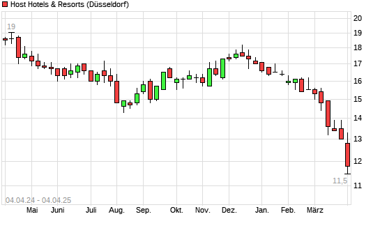 Mit dem Rücksetzer auf 12,50 EUR hat die Host Hotels & Resorts-Aktie (ISIN US44107P1049) am 03.04.2025 ein neues 3-Jahres-Tief erreicht und damit den Kurs vom 31.03.2025 eingestellt.