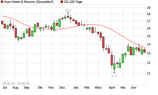 Mit dem Anstieg auf 13,50 EUR hat die Host Hotels & Resorts-Aktie am 24.06.2025 die 100-Tage-Linie nach oben gekreuzt.