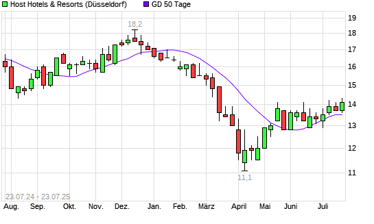 Mit dem Anstieg auf 13,50 EUR hat die Host Hotels & Resorts-Aktie am 22.07.2025 die 50-Tage-Linie nach oben gekreuzt.