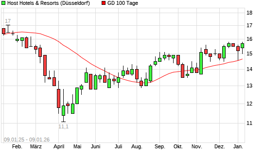 Mit dem Rücksetzer auf 14,50 EUR hat die Host Hotels & Resorts-Aktie am 08.01.2026 die 100-Tage-Linie nach unten gekreuzt.
