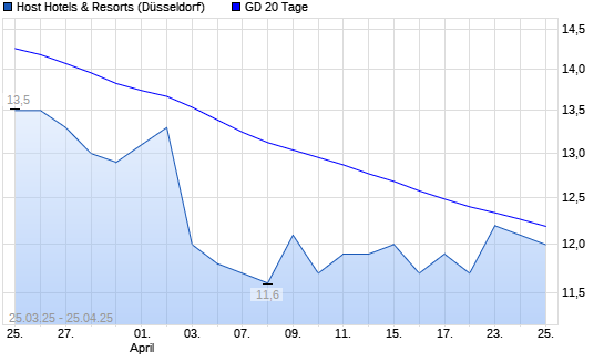 Mit dem Rücksetzer auf 12,00 EUR hat die Host Hotels & Resorts-Aktie am 24.04.2025 die 20-Tage-Linie nach unten gekreuzt.