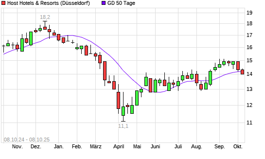Mit dem Rücksetzer auf 14,00 EUR hat die Host Hotels & Resorts-Aktie am 07.10.2025 die 50-Tage-Linie nach unten gekreuzt.