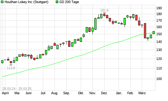 Mit dem Anstieg auf 153,75 EUR hat die Houlihan Lokey-Aktie am 24.03.2025 die 200-Tage-Linie nach oben gekreuzt.