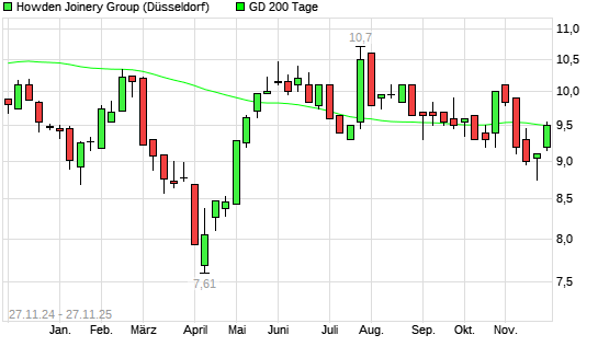 Mit dem Anstieg auf 9,60 EUR hat die Howden Joinery Group-Aktie am 26.11.2025 die 200-Tage-Linie nach oben gekreuzt.