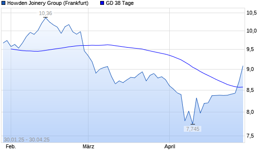 Mit dem Anstieg auf 8,70 EUR hat die Howden Joinery Group-Aktie am 29.04.2025 die 38-Tage-Linie nach oben gekreuzt.